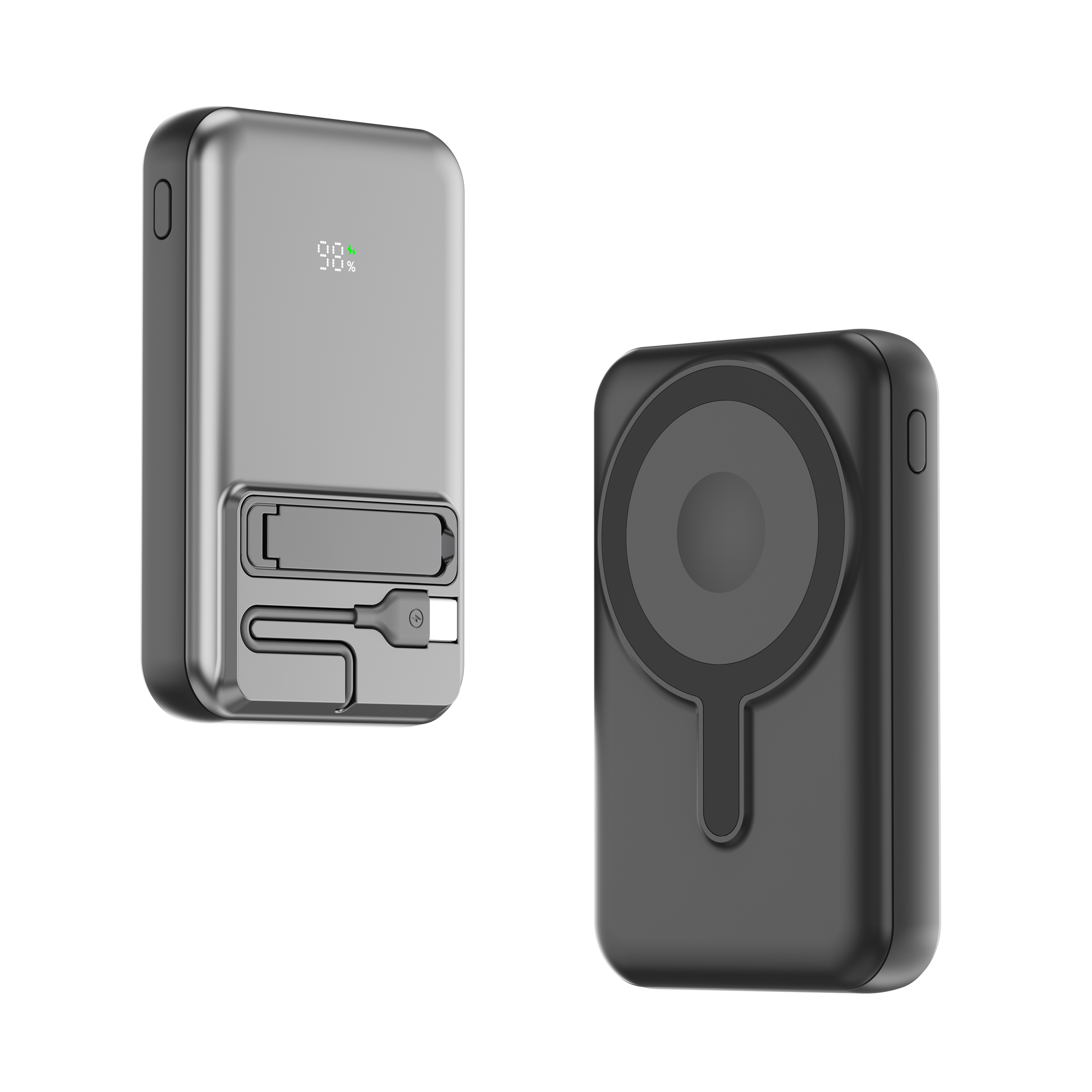 PB126C-MagCharge 10000mAh MagSafe 15W Wireless Charging PowerBank with KickStand and Built-in Cable